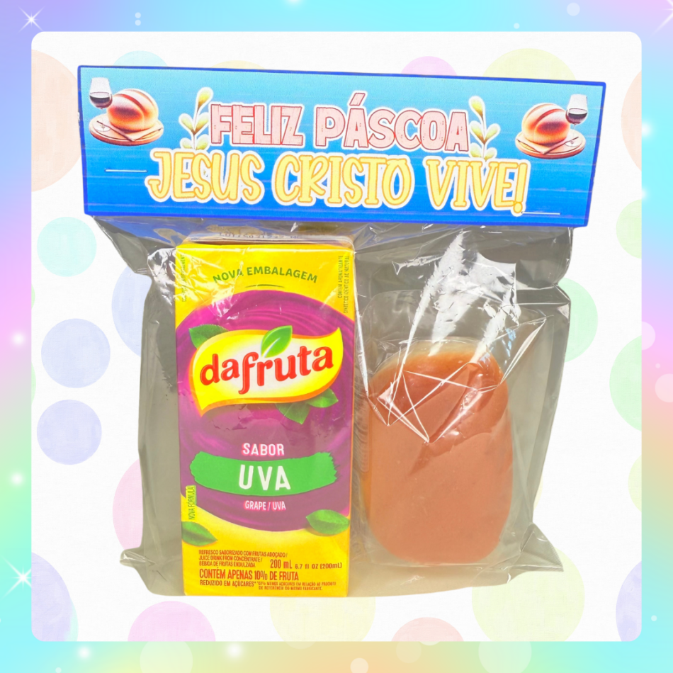 🥤 Tag para lembrancinha de suco e pão com a frase Feliz Páscoa – Jesus Cristo Vive