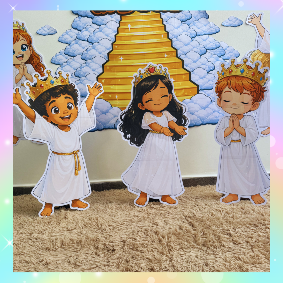 Perfeito para trabalhar valores como fé, pertencimento e amor de Deus de forma leve e visual 💫